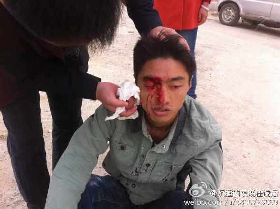 城管进村强拆持砖石群殴现场