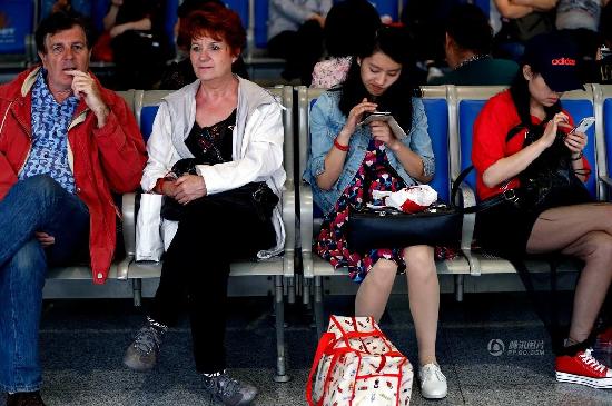 “世界上最遥远的距离,不是生与死。而是我站在你身边,你却在玩手机。”这是网络上对当下“手机控”的吐槽。虽是调侃,却道出了当代国人过度依赖手机的现状。图为杭州高铁站,玩手机的女孩与聊天的外国人。