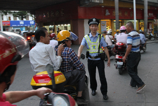 在赤坎立交桥执法点,记者看到有不少市民出现驾驶电动车不戴头盔或逆向行驶的交通行为,执法人员依法从重处理了30多辆电动车。