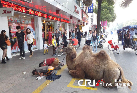 多地网友曝光断脚骆驼闹市乞讨照片