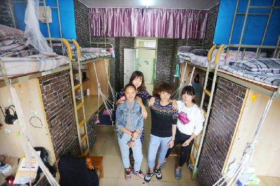 寝室门被装扮得如同咖啡馆般清雅简洁、整齐的摆设和迎面袭来的复古风格。