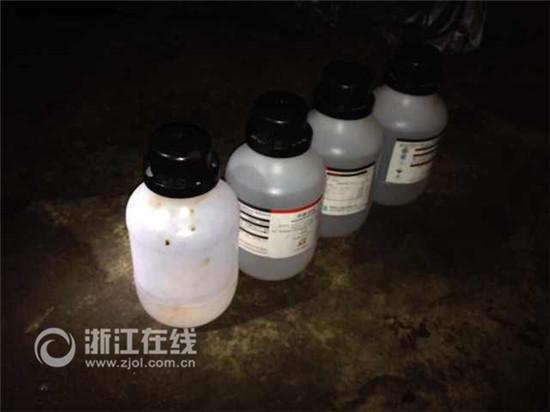行动中,警方当场查获了1吨多“毒鸭血”,并缴获了用于加工用的福尔马林液等添加剂。记者了解到,贾某所使用的添加剂均为工业用品,是从湖州一化工公司的门市部得。