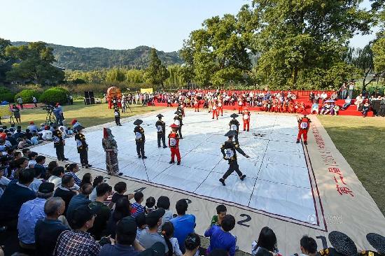 10月25日,“西湖杯”中国象棋争霸赛在杭州孤山大草坪开战,上演“象棋真人秀”。丁以婕 摄