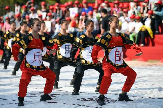 10月25日,“西湖杯”中国象棋争霸赛在杭州孤山大草坪开战。杭州艺校的学生扮演“棋子”上演“象棋真人秀”。丁以婕 摄