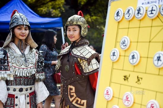 杭州艺校的学生扮演“棋子”上演“象棋真人秀”。丁以婕 摄