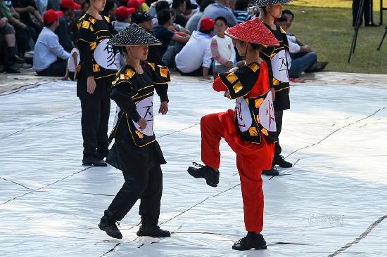 杭州艺校的学生扮演“棋子”上演“象棋真人秀”。丁以婕 摄