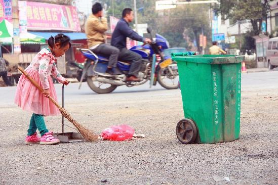 湖南5岁留守女童帮助奶奶当街头“环卫工”