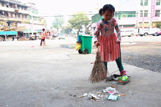 湖南5岁留守女童帮助奶奶当街头“环卫工”