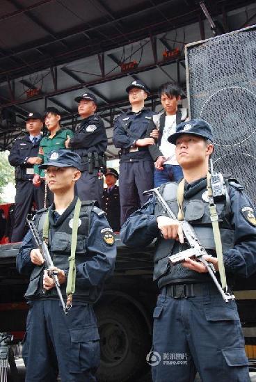 图为10月27日,通报会现场。据悉,2014年10月3日,桐梓县娄山关镇红花园村一村民在田间劳作时挖出一塑料口袋,将口袋打开后发现是一个已呈白骨化的人头颅,该村民随即报警。警方勘验后确认,白骨化尸体系女尸,并最终确定死者系本县风水嫁到娄山关镇娄山村的村民曾庆芬,进而锁定其丈夫杨何建(男,现年20岁)有重大作案嫌疑。10月24日,在福清市打工的杨何建被抓获。图为10月27日,主犯杨何建、包庇罪犯杨某在通报会现场。