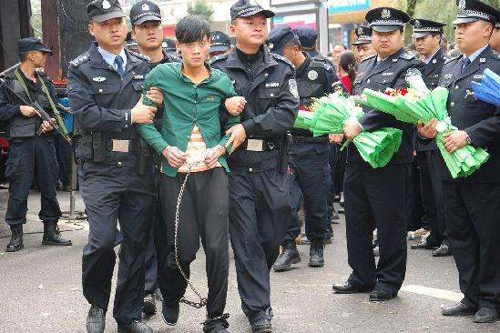 在审讯中,杨何建交待说,2012年11月3日,杨何建因与妻子曾庆芬发生矛盾,遂用皮带将其妻子曾庆芬勒死,并电话邀约自好杨某辉到其家中,商量如何抛余下的两袋尸块。商量妥当后,杨某建于当晚将装有头颅的口袋抛到距自己家200米远的高速路排水沟内。并于11月4日和杨某辉一起在县城将曾某银行卡上的5500元存款取走,之后二人将另一袋装有其他尸骨的口袋抛弃。图为10月27日,主犯杨何建在通报会现场。