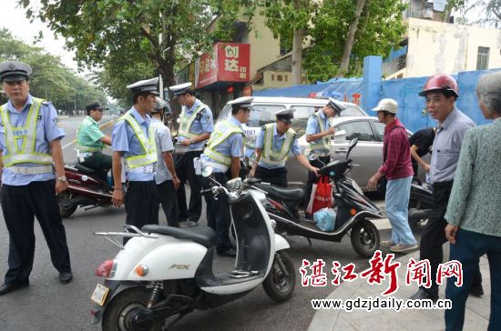 湛江新闻网讯:随着市区交通秩序专项整治工作的不断深入,虽然交通秩序已取得明显好转,但受道路改造施工带来的影响,交通陋习时有发生,给交通整治成果的巩固和“创文”工作带来了挑战。结合辖区道路交通管理实际情况,交警赤坎大队对辖区各岗点警力进行新一轮的统筹调配,推出“五加二”与“白加黑”的执勤模式,进一步在时间与空间上加大交通违法行为的整治力度。