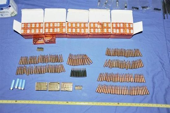 图为缴获的子弹。据统计,此案目前已缴获非法枪支8支、成套小口径步枪配件29套(可组装21支枪)、秃鹰气枪配件4套、各类军用、猎枪、小口径、气枪子弹6000余发、刀具4把。黄石市公安局副局长江智开表示,此案是黄石市建市以来,警方侦破的最大的一起涉枪案件。