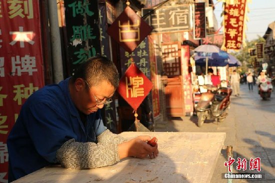 图为老师傅在一丝不苟雕刻,让木头在灵巧的双手下不断变化花样。 邓小强 摄