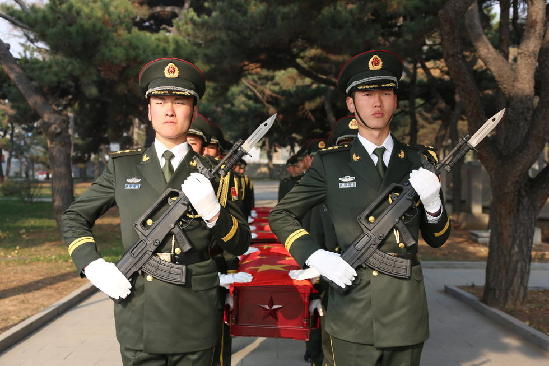 10月29日,在韩志愿军烈士遗骸安葬仪式在沈阳抗美援朝烈士陵园举行,隆重安葬今年3月28日迎回的437位在韩志愿军烈士遗骸。抗美援朝烈士家属与社会各界800余人共同见证这一庄严时刻。李祥辉/CFP