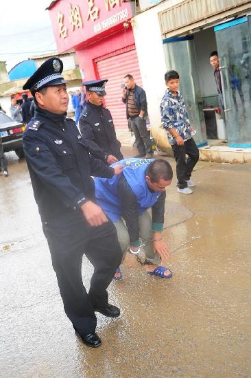 10月14日上午9点多,一名河道清洁工在螳螂川河边发现了一具男尸。经西山公安分局刑侦大队、昆明市西山区海口派出所调查和现场勘验,死者身中50多刀。10月16日海口派出所神速破案,抓捕嫌犯归案。图为指认现场照片。