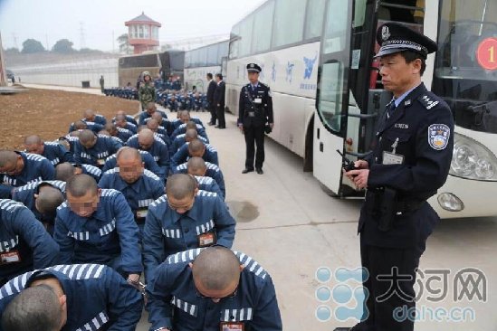 河南三门峡监狱搬迁 押送犯人场面壮观
