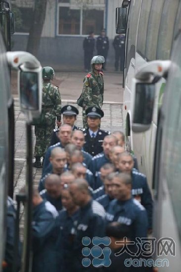 河南三门峡监狱搬迁 押送犯人场面壮观