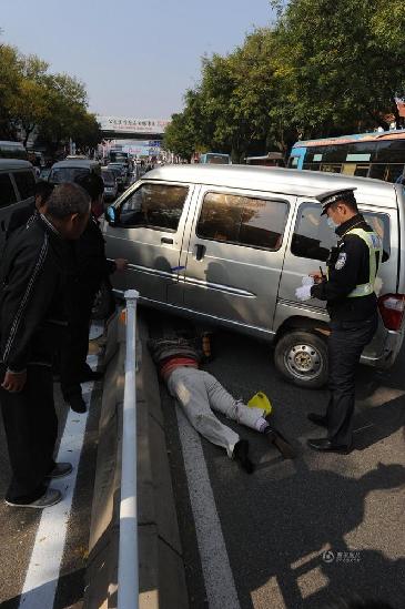 山东老妇车祸遭碾压 十余市民合力抬车救人