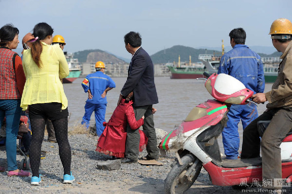 女子的丈夫紧跟在后,见到这一幕,急忙大喊“救人!”这时,正开着货车停在码头上的熊斌听到了。他跳下车,跑到岸边,脱了外套,立马跳海救人。此时,正值涨潮期,眼看着潮水把女子越推越远。一个目击者说,好几次眼看小伙子就要抓住她了,但一个浪头打来,又被推向了更远处。3米、5米、10米……熊斌游了好一会才抓到落水的女子。他开始推着落水女子往岸边游,但没多久,体力就明显有些吃不消了。立冬时节,浑浊的海水显得格外寒冷,码头上一个浪头接着一个浪头,站在岸边的人看不清熊斌的人影,只看到落水女子仰面在远处的海面上一沉一浮。“快上来,快上来……”心急的围观者开始为熊斌担心,但熊斌没有放弃,始终奋力托举着轻生女子。