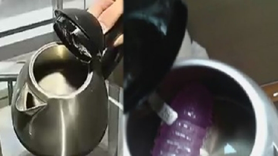 从外地来西安住进一家酒店,烧了壶开水倒给朋友后,再次去卫生间接水,却发现壶里有个“安全套”。