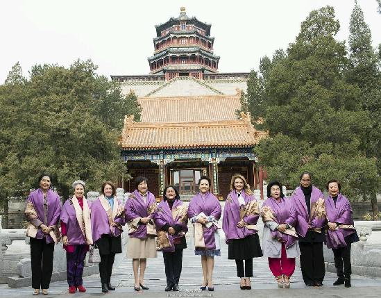 彭丽媛同APEC经济体领导夫人游颐和园
