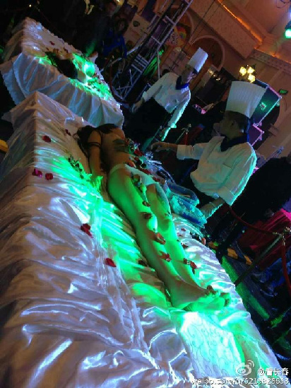 图为女体盛宴现场。