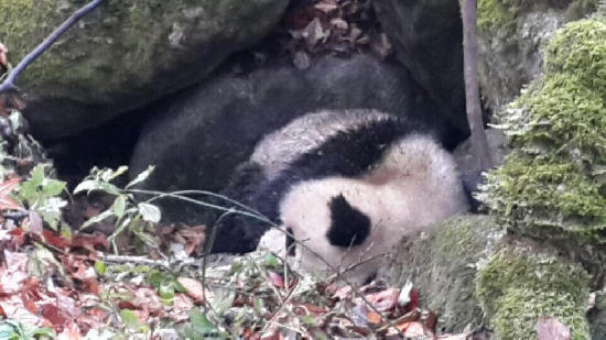 四川野生大熊猫疑遭黄喉貂围攻 部分肠管外露