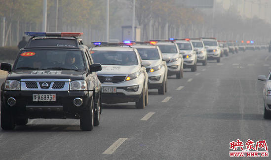 20日10时许,几十辆警车齐刷刷地行驶在路上,现场甚是壮观。