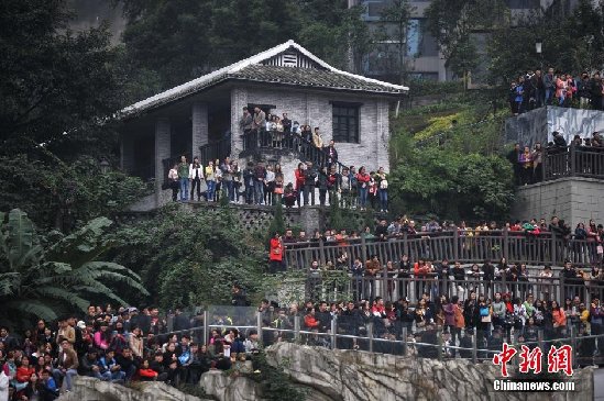 11月20日,重庆上万粉丝在南滨路等待节目的录制。陈超 摄
