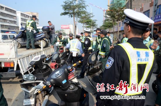 湛江新闻网讯:为全面巩固市区交通秩序综合整治成果,营造良好道路交通环境迎接创建国家文明城市提名资格及“海博会”的顺利,11月20日,交警赤坎大队精密部署,集中警力设卡重点整治海滨大道交通秩序乱点,当天共查扣交通违法车辆92辆,其中超标电动车79辆,两摩11辆,汽车2辆;查获涉牌涉证车辆23辆,查处其他交通违法行为29起,迅速打响市区交通秩序综合整治专项行动“冬季攻势”第一枪,掀起新一轮整治高潮。19日,市公安机关全面启动街面防控及交通整治专项工作后,交警赤坎大队迅速组织中队(股)以上领导召开交通整治专项行动冬季攻势专题部署会议,就整治重点、任务分工、警力调整、巡逻点段等进行了专题研究讨论。结合整治重点范围和“海博会”举办点,陈向大队长当即指示将冬季攻势首站场设在海滨大道,并研究制定了严密的整治计划,要求全体执勤人员切实增强责任心和主动性,为形成强大的交通整治冬季攻势鼓足干劲。
