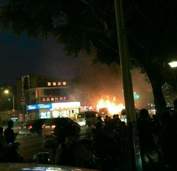 11月21日晚上18点30分左右,柳州市屏山大道屏山小区附近路段,一辆大公交车突发起火,火势非常大,车上乘客四散逃生,致多人受伤。