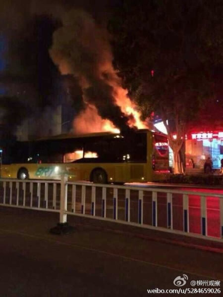 11月21日晚,广西柳州市屏山大道屏山小区附近一公交车起火。