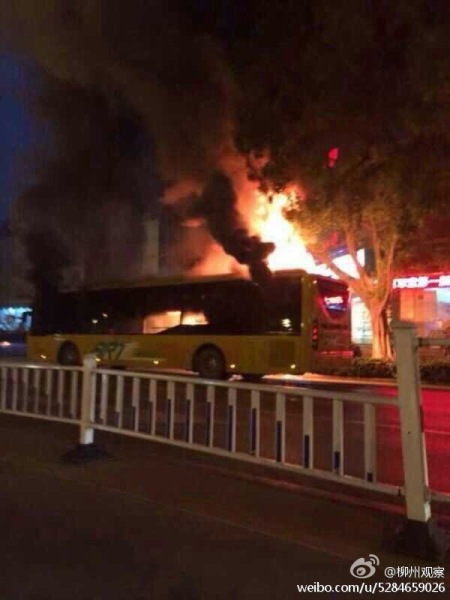 广西柳州一辆公交起火 多人烧伤