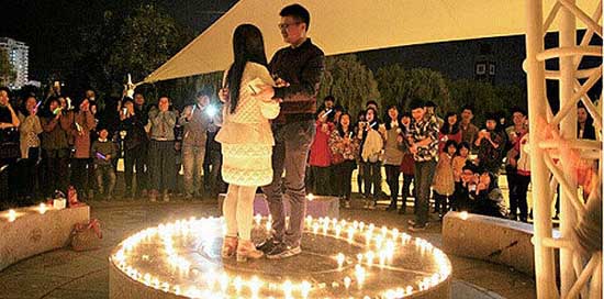 方华说,围观的人实在太多了,后来心理调适好后,女友才随他走了出去。人群中,一个接一个人走向“师母”,每人递给她两朵红玫瑰,“你好漂亮”、“嫁给方老吧”……方华的女友思思说,自己当时真的很感动,没想到同学们为了他们的求婚准备了这么多。一路走去都伴着烛光,直到踏入蜡烛围成的心形中,方华将戒指套在女友的手指上。学生们又开始起哄,“抱一下”、“亲一个”……方华都照做了。求婚成功了!