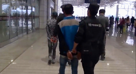 11月25日3时许,温州乐清市柳市镇江西籍出租车司机吴忠被5名青年因劫财残忍杀害。乐清警方34个小时不眠不休,昨天成功抓获3名主要犯罪嫌疑人。另两名犯罪嫌疑人乐清警方还在继续追捕中。5名犯罪嫌疑人都是“95后”,其中4人来自湖北,一人来自湖南。图为嫌疑人被抓捕归案。