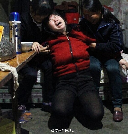 就在前天,记者手机上收到5条短信,其中4条是空短信,最后1条是求助短信。吴师傅的妻子毛女士说,丈夫生前一直叫她做人要有骨气,可她实在是没办法了,她不忍让三个孩子辍学,她希望有好心人来帮帮她们。毛女士的亲友告诉记者,她不太会用手机,前四次编辑好求助短信后,觉得难以启齿,便把短信删掉,退回主页面,可她不知道,其实每次她按的都是发送键。图为受害人家属痛哭。