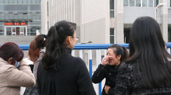 事发后,康某家属守在校门外讨说法。