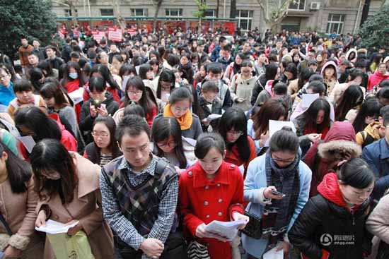 2014年11月30日,2015年度中央机关及其直属机构考试录用公务员笔试今日举行。图为江苏省南京市,考生在南京林业大学考点门口等待进入考场。