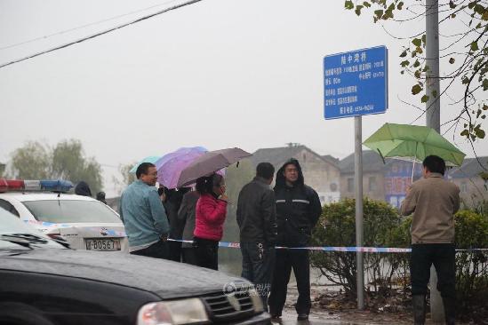 2014年11月30日,浙江慈溪,坐三轮车回家的慈溪姑娘娄璐宁被找到,她和三轮车司机孙师傅的尸体被警方从河里打捞起来,并确定死亡。图为警方发现三轮车坠河点后,拉起警戒线。葛藤/CFP