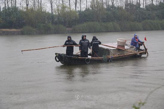 这条河边上没有护栏,车辆因为地面湿滑,或者因为两人争执,都有可能冲到河里。图为警方搜寻。