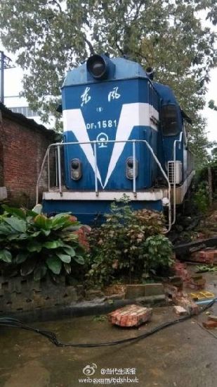 #突发#【柳州市区一火车出轨冲进小区】今天上午10时许,在柳州市和平路,一辆火车车头冲破一堵围墙,开到了小区里面。南国今报火车也任性啊!希望人没事。