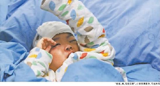 “爸爸,痛,我想回家。”昨晚,在四川大学华西医院上锦分院,3岁9个月的小语躺在病床上,用手捂着受伤的眼睛,哭喊着要回家。“不怕,等病好了,我们就回家”,父亲姜涛哄着女儿。