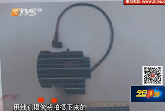 该男子姓阳,这就是其用来进行偷拍的针孔摄像头。