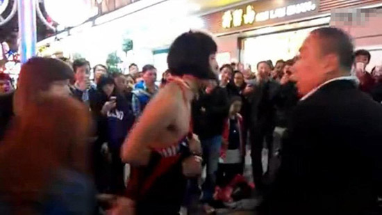 网上流传一则短片,指在深圳一间商场门外,日前有一名身穿黑丝袜、超短裙和透视上衣、化浓妆的一身女性打扮的男子,与2名女士发生口角,更被2名女士扯掉假发、上衣、短裙、丝袜。
