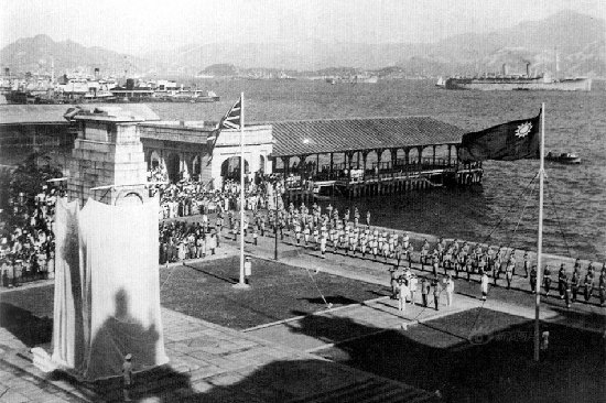 日军投降后不久,同盟国在香港中环和平纪念碑前举行胜利纪念仪式,中国国民政府派军队参加。香港和平纪念碑位于中环遮打道,原为纪念第一次世界大战期间阵亡的军人。供图/FOTOE