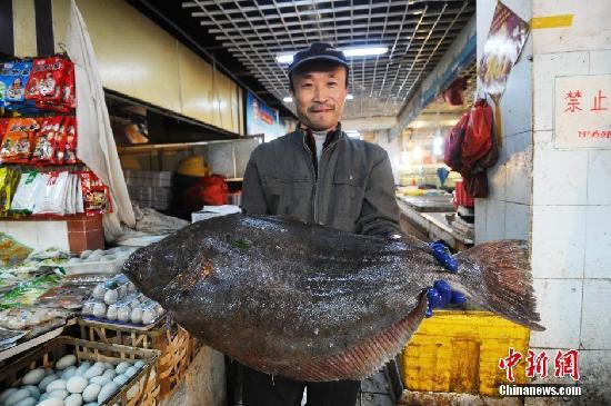 图为渔民捕获的一条罕见的重约20斤的鸦片鱼。
