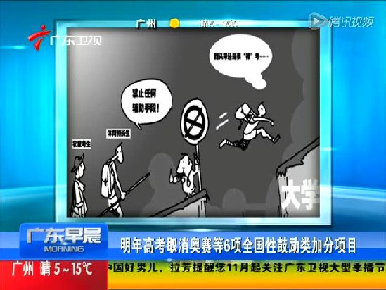 昨日,记者从相关部门获悉,教育部将出台《关于进一步减少和规范高考加分项目和分值的意见》及《关于进一步完善和规范高校自主招生试点工作意见》。2015年1月1日起,将取消奥赛等6项全国性鼓励类加分项目,只保留“烈士子女”等5类加分项目。教育部要求,各省市不得擅自扩大全国性加分项目使用范围。此外,有关部门要对加分资格进行复核复测。涉及体育类特长生加分的考试,体育部门要按照二级运动员标准进行严格测试,确保加分资格真实可信。最终规定,以教育部出台的相关文件为准。