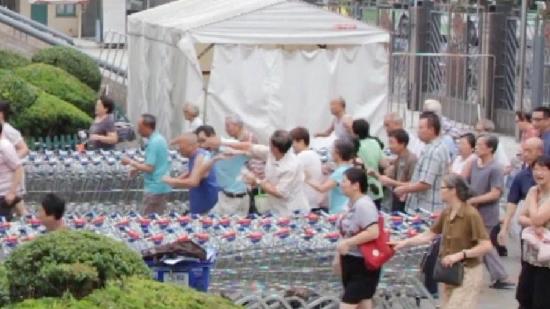 2014年12月18日报道,两名外国人Jonathan Meador和Jonathon Lim从14楼高层阳台拍摄了上海一家超市门口大批老人开门后蜂拥挤进超市的场景。图为拥挤中,两位老人甚至动手厮打起来。