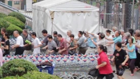 2014年12月18日报道,两名外国人Jonathan Meador和Jonathon Lim从14楼高层阳台拍摄了上海一家超市门口大批老人开门后蜂拥挤进超市的场景。图为两位老人大打出手。