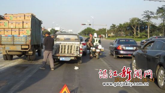 湛江新闻网讯:为加强对辖区道路交通安全隐患的全面排查、治理,保障道路安全畅通,重点对封路的高速路口周边交通的巡逻管控,提高管事率,及时高效应对各类交通意外,确保辖区交通安全、有序、畅通。 12月17日,交警麻章大队机动巡逻中队卓伯勇副中队长带领民警黄启军、叶文强、莫劲松及交通协管员陈俊良、周科滴、庞志源等在麻章疏港大道红绿灯处执勤。下午16时左右,从雷州往市区方向发生一起追尾交通事故,紧跟着后面有一辆鸣着警笛的救护车,执勤民警马上意识到救护车里有急需抢救的病人,由于当时从雷州往麻章方向的车流量非常大,车辆堵塞已长达200多米,救护车根本无法通过。卓伯勇副中队长即与执勤民警黄启军带领协管员陈俊良等对事故现场进行拍照、取证后,迅速清理现场、疏导交通。按照分工,互相配合,吹起哨子、打起手势,把救护车从车流中指引出来,优先通行,获得了群众的肯定,救护人员及病人家属纷纷打电话给支队领导“表扬、感谢”。